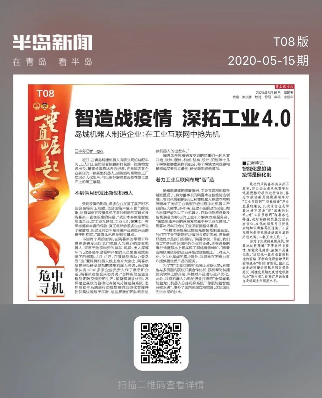 近日,在青島科捷機(jī)器人有限公司的裝配車間,工人們正在忙碌著把最新打包的一批貨物發(fā)送出去。董事長陶喜冰告訴記者,這是國內(nèi)某企業(yè)新訂的一款新型機(jī)器人。到貨后可幫助該工廠實(shí)現(xiàn)少人化生產(chǎn),可以很好解決其近期在復(fù)工復(fù)產(chǎn)上的用工難題。