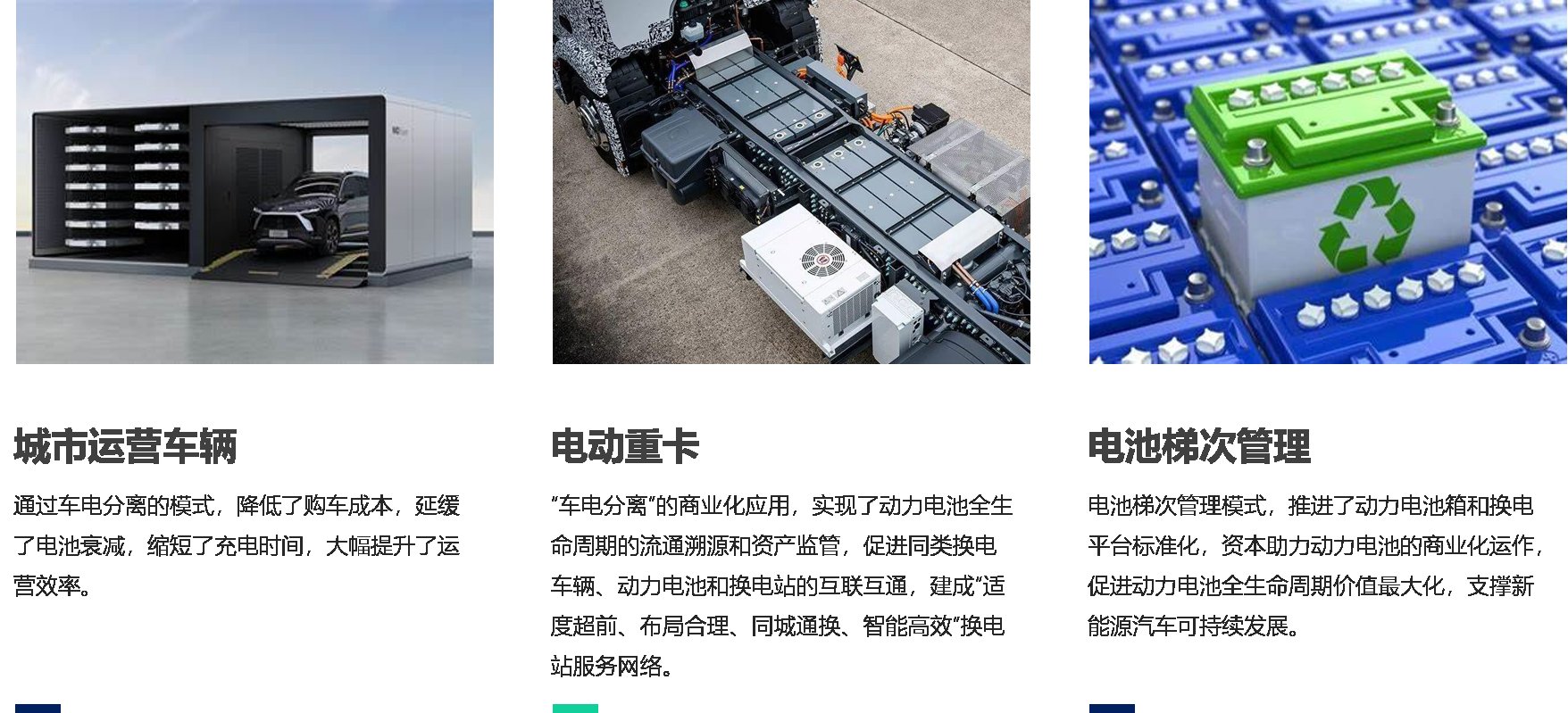 配套車電分離的城市運營車輛、電動重卡、電池梯次管理的生態(tài)化運營模式